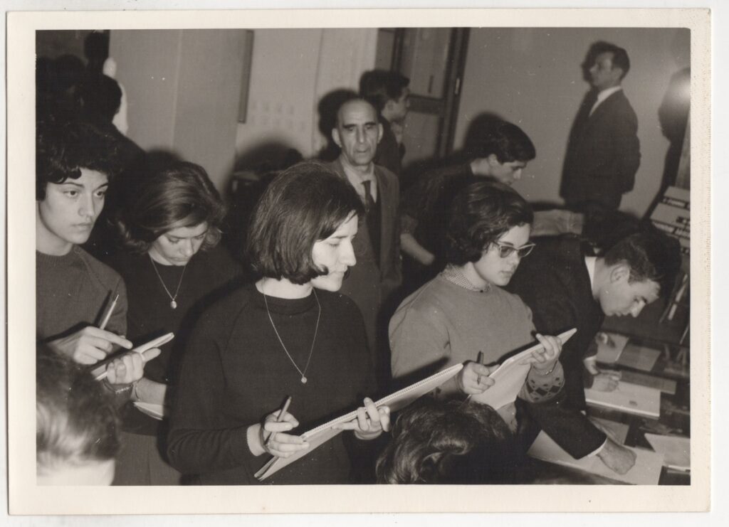 Φωτογραφία, α/μ, φωτογραφικό χαρτί, 13×18 εκ., με εικονιζόμενο τον Τάκη Μάρθα ανάμεσα σε άλλα πρόσωπα. Φέρει επιγραφές.