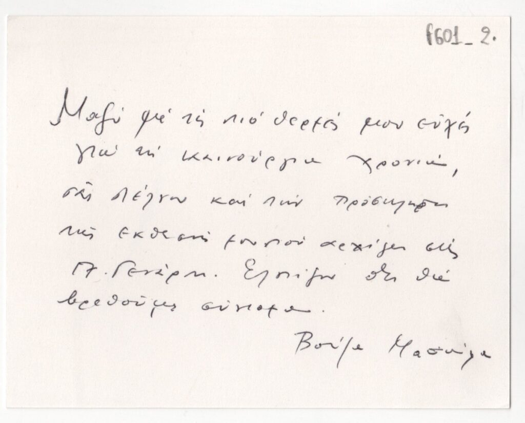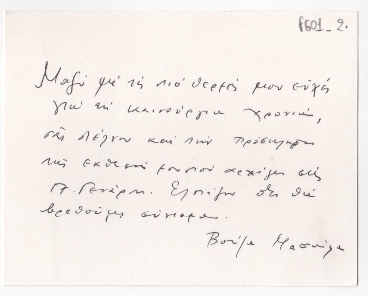 Ιδιόχειρο σημείωμα της Βούλας Μασούρα