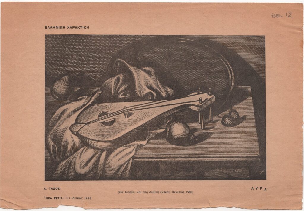 Απόκομμα του περιοδικού “Νέα Εστία” (01/06/1950) όπου δημοσιεύεται αναπαραγωγή έργου του A. Τάσσου.