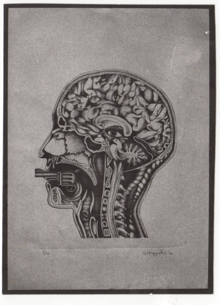 Φωτογραφία, α/μ, σε φωτογραφικό χαρτί, 9,2×7,2 εκ. Αναπαραγωγή έργου του χαράκτη Γ. Αργυράκη.