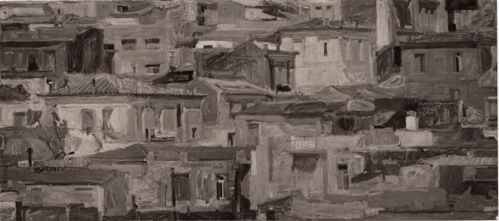 Φωτογραφία, α/μ, φωτογραφικό χαρτί, 7,6×17,2 εκ. Αναπαραγωγή έργου του Παναγιώτη Τέτση. Στην πίσω όψη, επιγραφή με τα στοιχεία του έργου.
