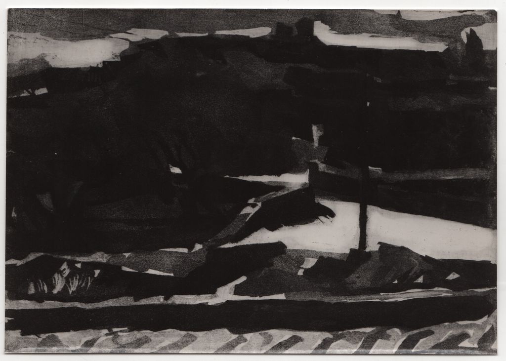 Φωτογραφία, α/μ, φωτογραφικό χαρτί, 12,0×17,0 εκ. Αναπαραγωγή του έργου του Παναγιώτη Τέτση “Paysage a Siphnos”, 1965. Στην πίσω όψη, επιγραφή με τα στοιχεία του έργου.