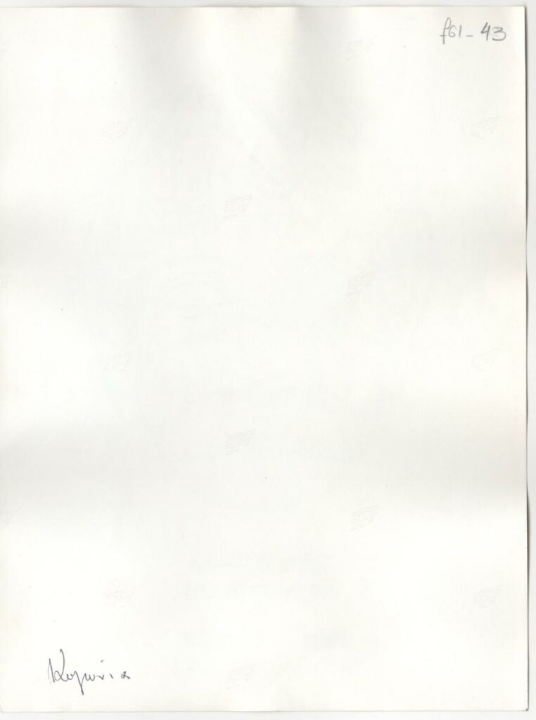 Ασπρόμαυρη εκτυπωμένη φωτογραφία έργου [του χαράκτη Γιώργου Αργυράκη]. Στην πίσω όψη επιγραφή.