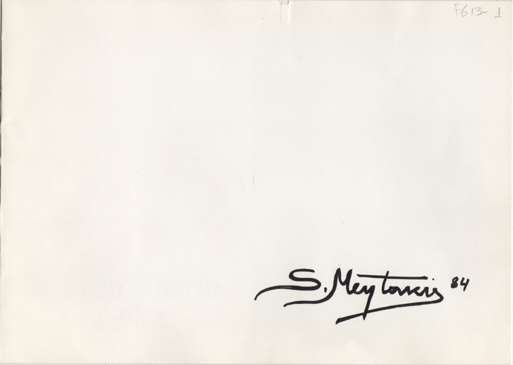Έντυπο, χαρτί ιλλουστρασιόν, 20,5×28,5 εκ., στα ελληνικά, ατομικής έκθεσης ζωγραφικής του Στρατή Μεντάκη στην Αθήνα. Περιέχει κείμενα των Γιώργου Μάρκου, Βεατρίκης Σπηλιάδη και Αθηνάς Σχινά για τον καλλιτέχνη και το έργο του. Επίσης, βιογραφικό σημείωμα και εικονογράφηση.