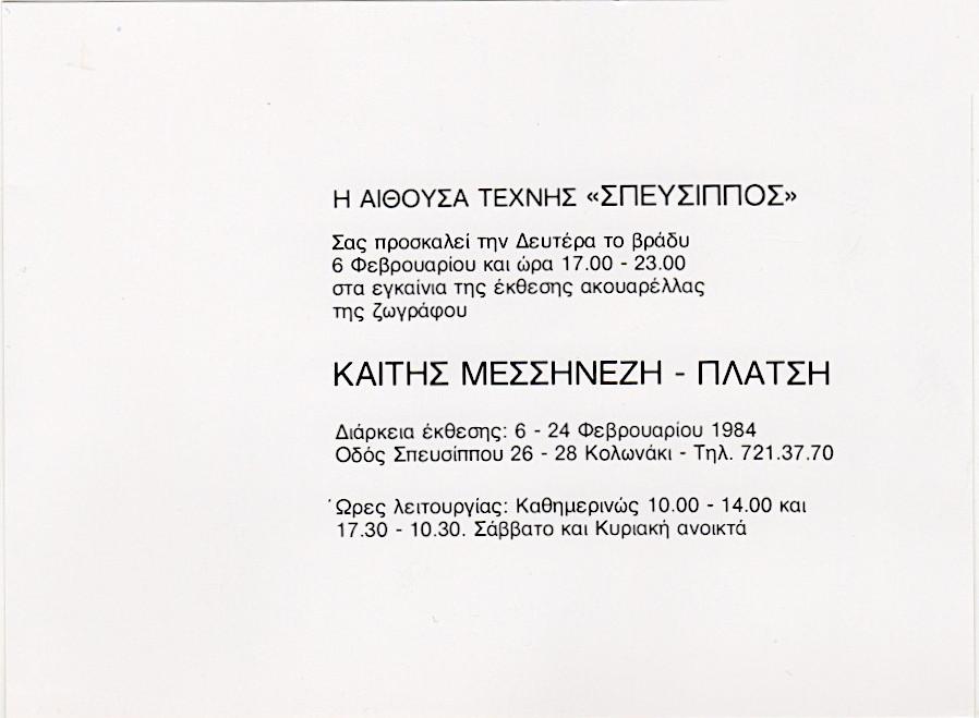 Έντυπο, στα ελληνικά, χαρτόνι, 12×16 εκ. Πρόσκληση εγκαινίων έκθεσης στην Αθήνα.