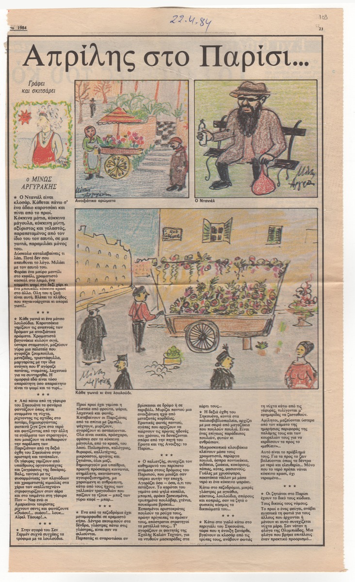 Απόκομμα της εφημερίδας “Έθνος” (22/04/1984) όπου δημοσιεύεται άρθρο του Μίνωα Αργυράκη με τις εντυπώσεις του από το Παρίσι.
