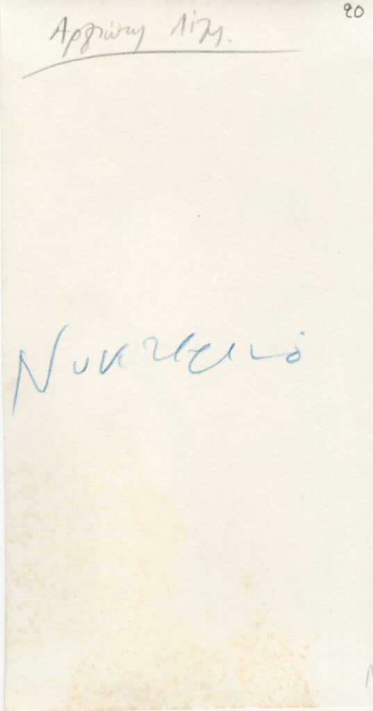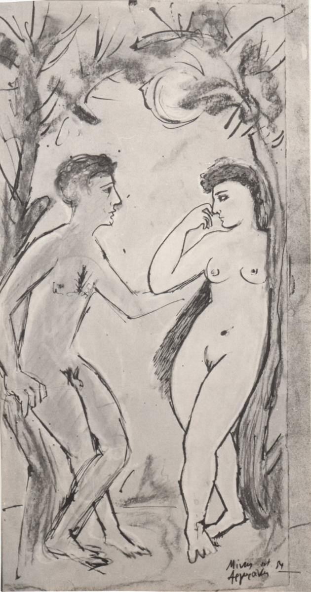 Ασπρόμαυρη εκτυπωμένη φωτογραφία έργου του Μίνωα Αργυράκη. Στην πίσω όψη επιγραφές.