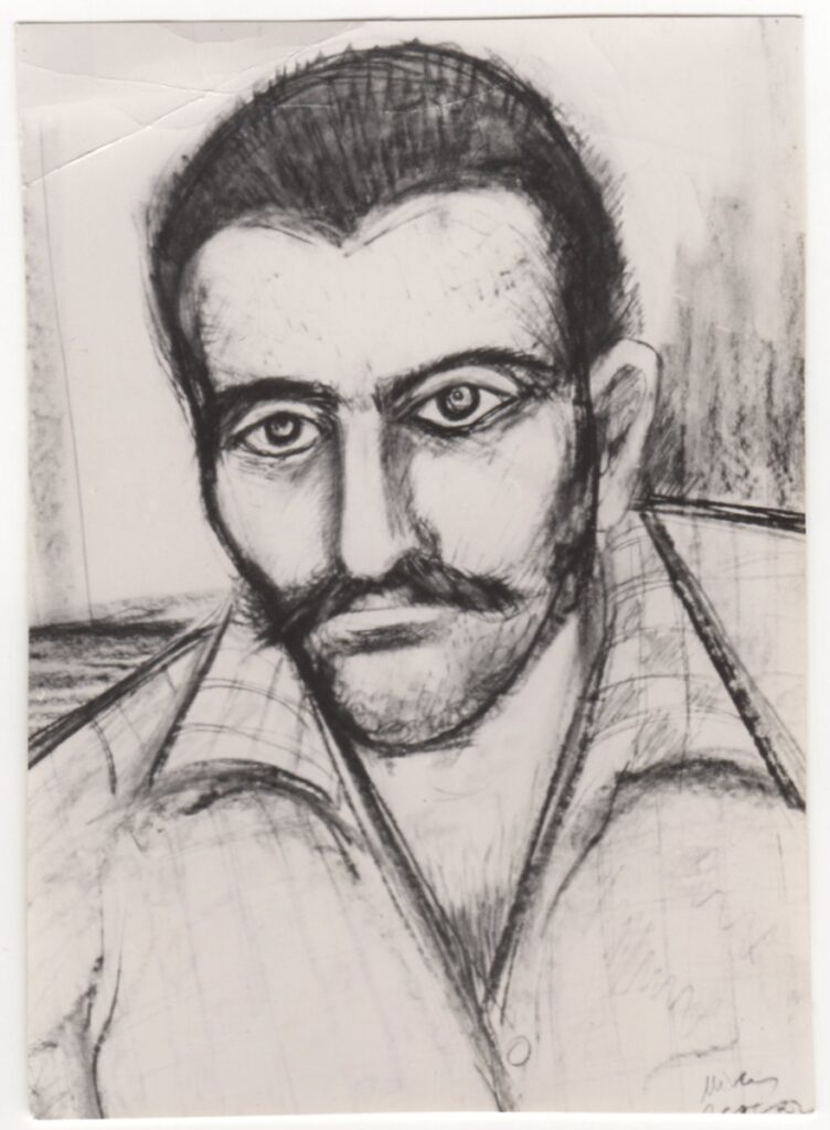 Φωτογραφία, α/μ, φωτογραφικό χαρτί, 11,5×8,0 εκ. Αναπαραγωγή προσωπογραφίας του Πάνου Ραϋμόνδου φιλοτεχνημένης από τον Μίνωα Αργυράκη. Στην πίσω όψη επιγραφές.