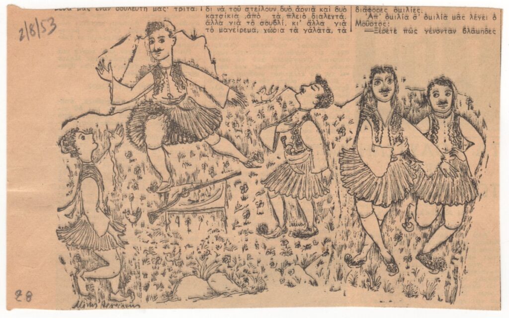 Απόκομμα εφημερίδας, στα ελληνικά, χαρτί, 10,0×16,0 εκ. Αναπαραγωγή έργου του Μίνωα Αργυράκη. Πάνω αριστερά επιγραφή.