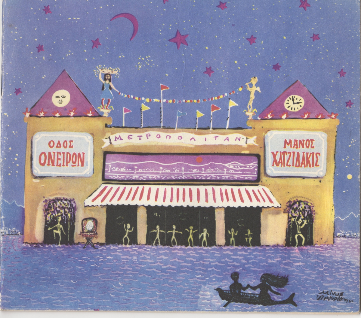 Έντυπο, χαρτί, 18 φφ, 17,3×19,7, στα ελληνικά. Το πρόγραμμα της πρώτης παραγωγής της παράστασης “Οδός ονείρων” του Μάνου Χατζηδάκι με σκηνικά και κοστούμια του Μίνωα Αργυράκη. Περιλαμβάνει, τα ονόματα των συντελεστών (ηθοποιών, τραγουδιστών, χορευτών, μουσικών και τεχνικών) και τα κείμενα των τραγουδιών. Στις τελευταίες σελίδες αναπαραγωγή παρτιτουρών.