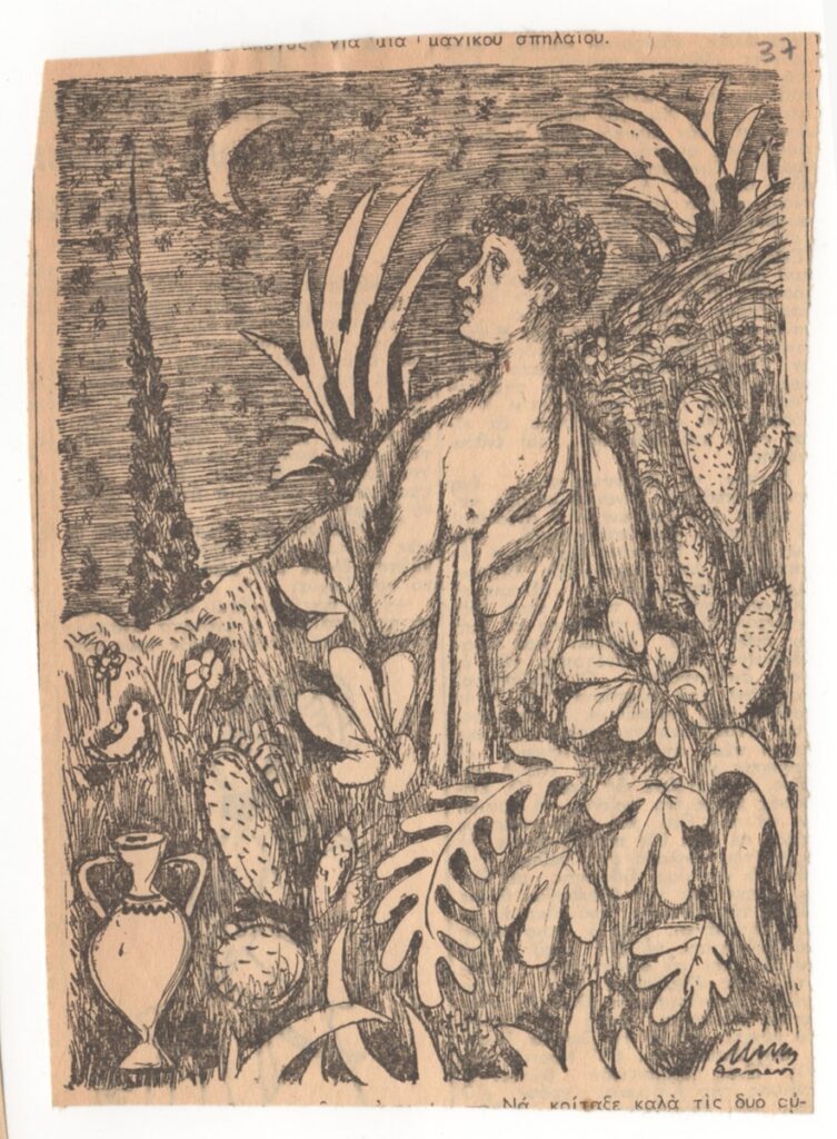 Απόκομμα εντύπου, χαρτί, 13,7×9,8 εκ. Αναπαραγωγή έργου του Μ. Αργυράκη.