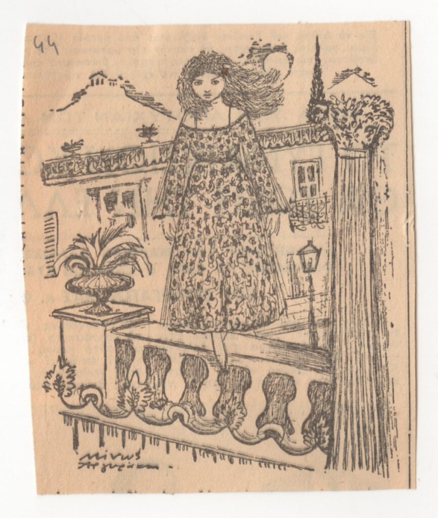 Απόκομμα, έντυπο, χαρτί, 9,8×7,5 εκ., όπου δημοσιεύεται, αναπαραγωγή έργου του Μίνωα Αργυράκη.