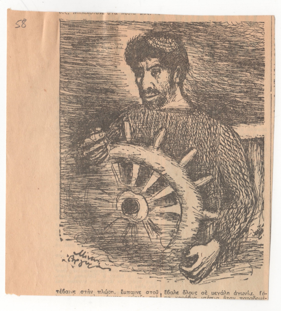 Απόκομμα, έντυπο, στα ελληνικά, χαρτί, 12,8×12,0 εκ., όπου δημοσιεύεται, αναπαραγωγή έργου του Μίνωα Αργυράκη
