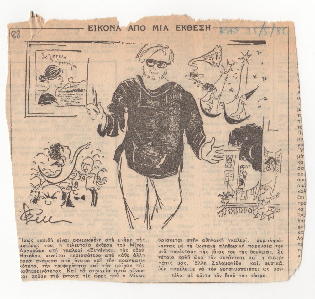Απόκομμα της εφημερίδας “Η Καθημερινή” (25/05/1982), όπου δημοσιεύεται κριτική της Έλλης Σολομωνίδη Μπαλάνου για την ατομική έκθεση έργων του Μίνωα Αργυράκη στην Αθήνα.