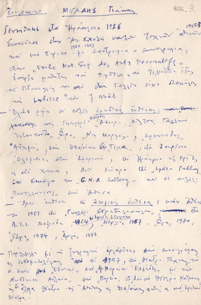 Βιογραφικό σημείωμα του Γιάννη Μιγάδη