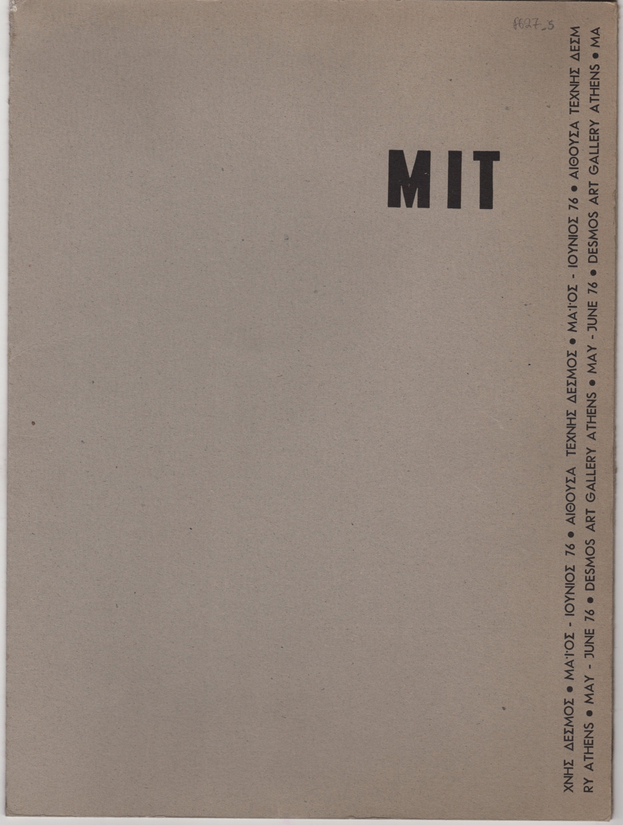 Φάκελος, χαρτόνι, 30,8×22,8 εκ., από την ατομική έκθεση του Ευθύμιου Μητρόπουλου στην Αίθουσα Τέχνης ΔΕΣΜΟΣ στην Αθήνα το 1976.