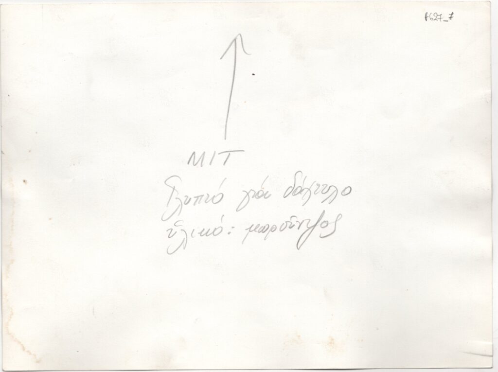 Φωτογραφία, α/μ, σε φωτογραφικό χαρτί, 18,0×24,0 εκ., του έργου του Ευθύμιου Μητρόπουλου (ΜΙΤ). Στην πίσω όψη επιγραφή με τα στοιχεία του έργου.