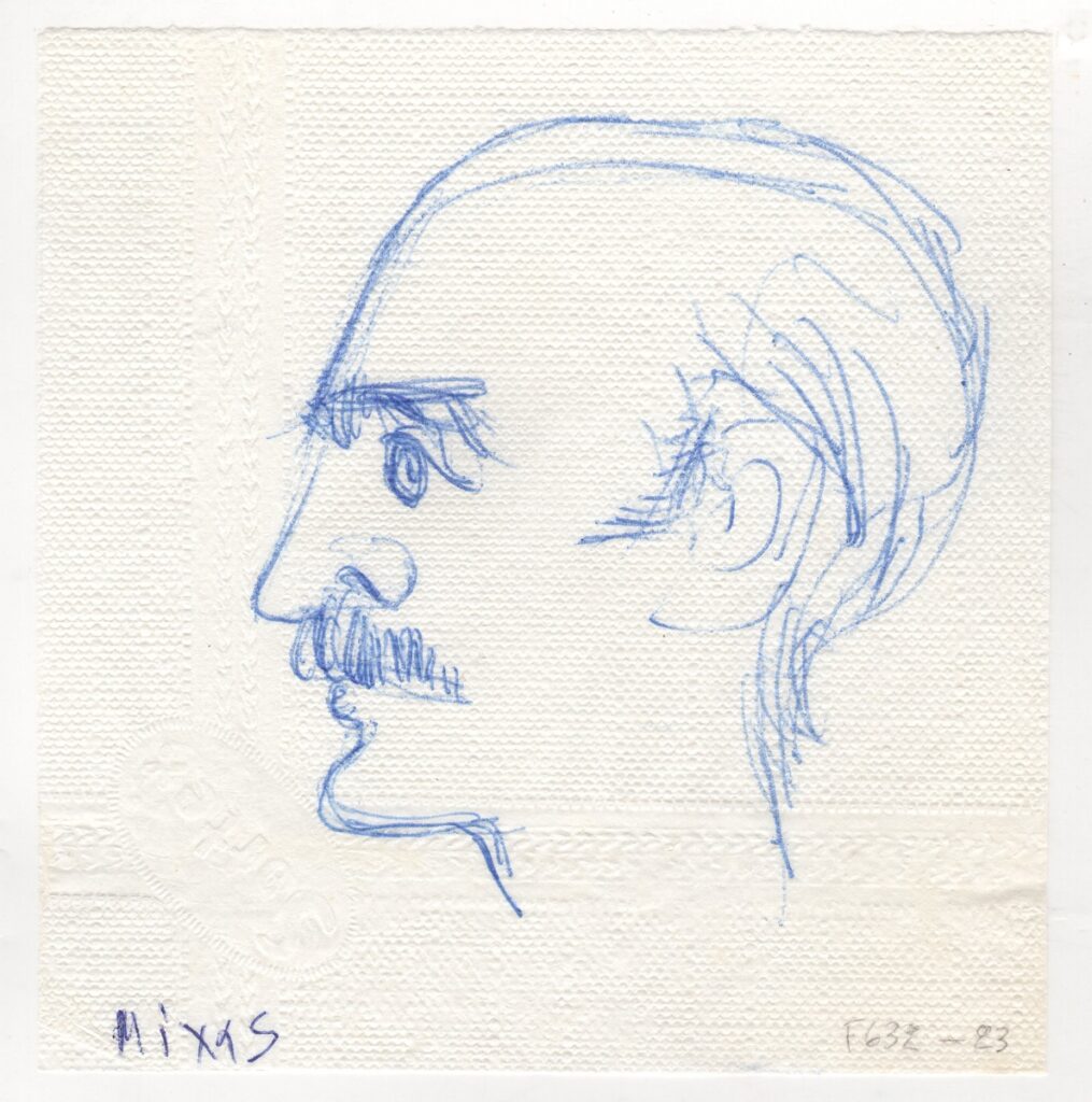Απόκομμα χαρτοπετσέτας, 15,5×15 εκ., με σχέδιο του Γιάννη Μίχα.