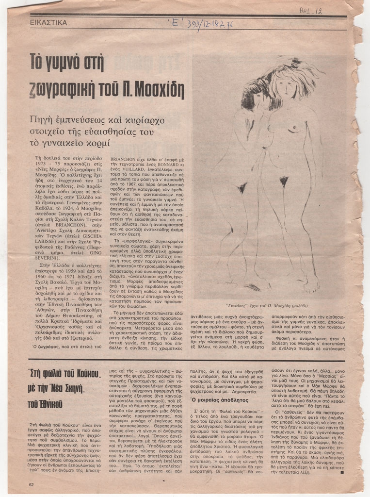 «Το γυμνό στη ζωγραφική του Π. Μοσχίδη. Πηγή εμπνεύσεως και κυρίαρχο στοιχείο της ευαισθησίας του το γυναικείο κορμί»
