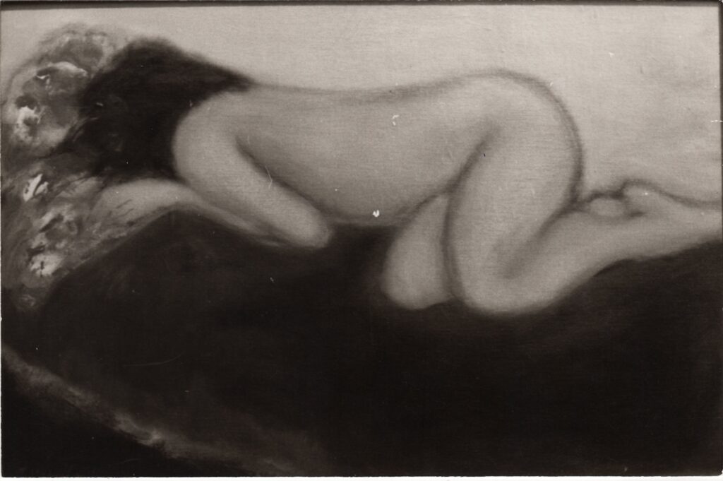 Αναπαραγωγή έργου του Π. Μοσχίδη (γυμνό), 1973. Στην πίσω όψη επιγραφή.