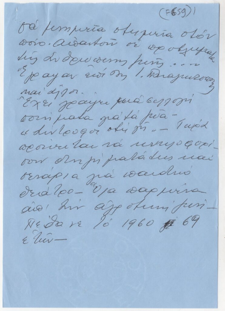 Βιογραφικό, χειρόγραφο, χαρτί, 2 φφ, 21×15 εκ., στα ελληνικά, της Άννας Μπεκιάρη. Δίνονται αποσπάσματα κρίσεων για το έργο της.