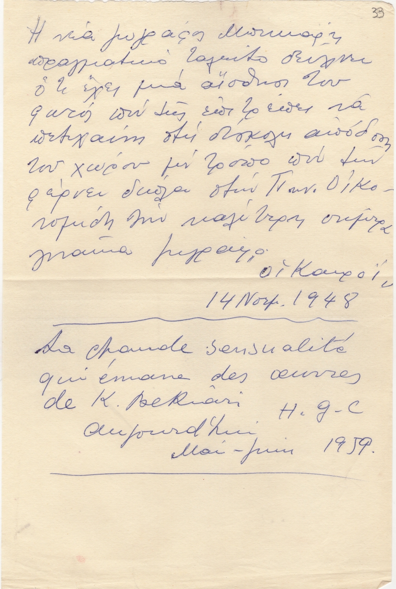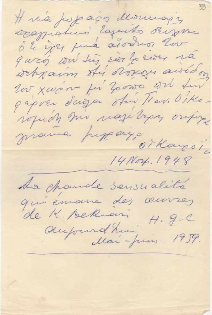 Αποδελτιώσεις, χειρόγραφο με μπλε μελάνι, χαρτί, 28,5×19 εκ., στα ελληνικά και γαλλικά, πηγών στον Ελληνικό και Γαλλικό Τύπο. Δίνονται κριτικές για την καλλιτέχνιδα και τα έργα της.