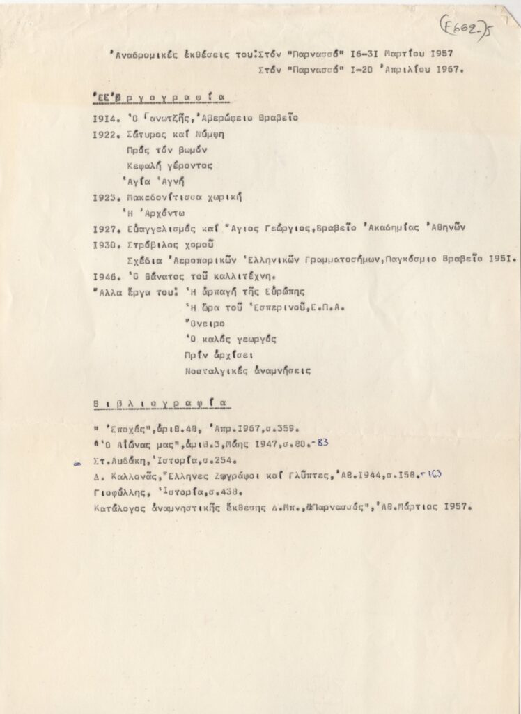 Έκθεση “Δημήτριος Α. Μπισκίνης 1891-1947. Αναμνηστική Έκθεσις των Έργων του”