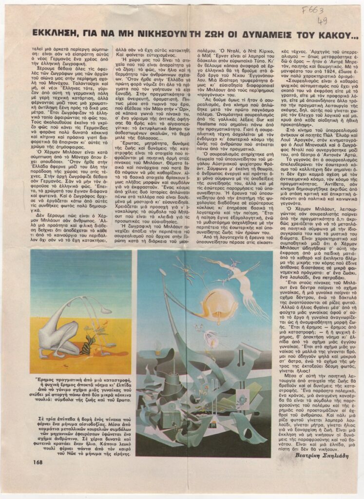 Απόκομμα, χαρτί, 30×22 εκ., στα ελληνικά, δημοσίευσης άρθρου αναφερόμενου στη ζωή και το εικαστικό έργο του Χέρμαν Μπλάουτ.