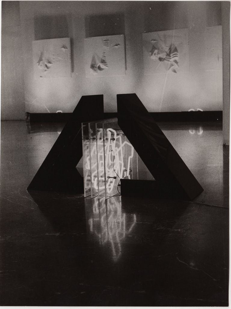 Φωτογραφία, α/μ, σε φωτογραφικό χαρτί, 24,0×18,0 εκ. Φωτογραφία έκθεσης έργων του Γιάννη Μπουτέα.