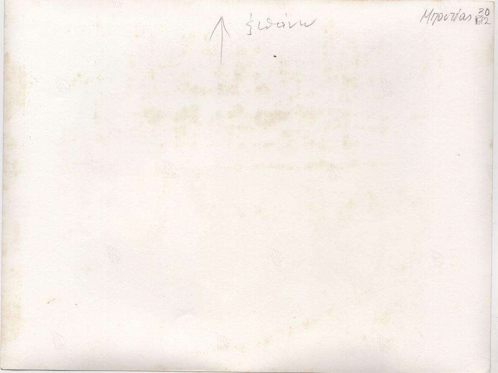 Φωτογραφία, α/μ, σε φωτογραφικό χαρτί, 18,0×24,0 εκ. Αναπαραγωγή έργου του Γιάννη Μπουτέα τοποθετημένου σε εκθεσιακό χώρο. Στην πίσω όψη, επιγραφή.