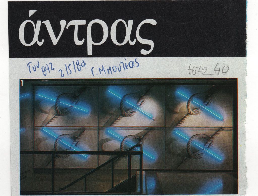 Απόκομμα, έντυπο, χαρτί ιλουστρασιόν, 8,5×10,0 εκ., όπου δημοσιεύεται, αναπαραγωγή έργου του Γιάννη Μπουτέα. Επιγραφή με τα στοιχεία της δημοσίευσης.