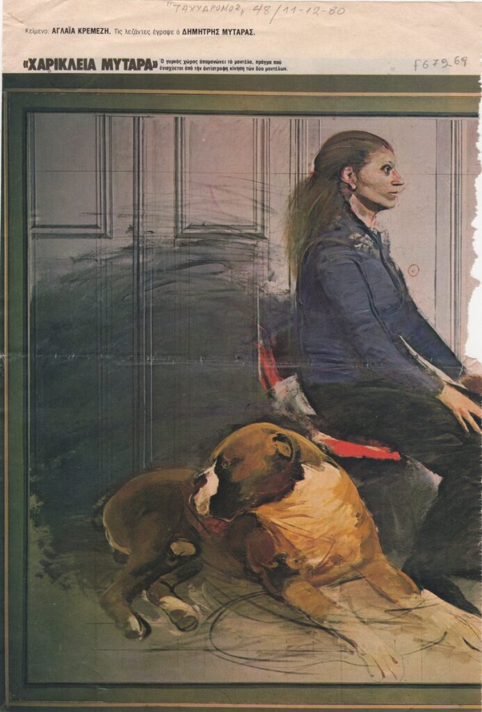 Απόκομμα του περιοδικού “Ο Ταχυδρόμος” (11/12/1980) δημοσίευσης κριτικής έκθεσης του Δημήτρη Μυταρά στην Γκαλερί Ζουμπουλάκη. Στην έκθεση πρωτοστατούν πορτραίτα Αθηναίων που φιλοτέχνησε ο ζωγράφος.