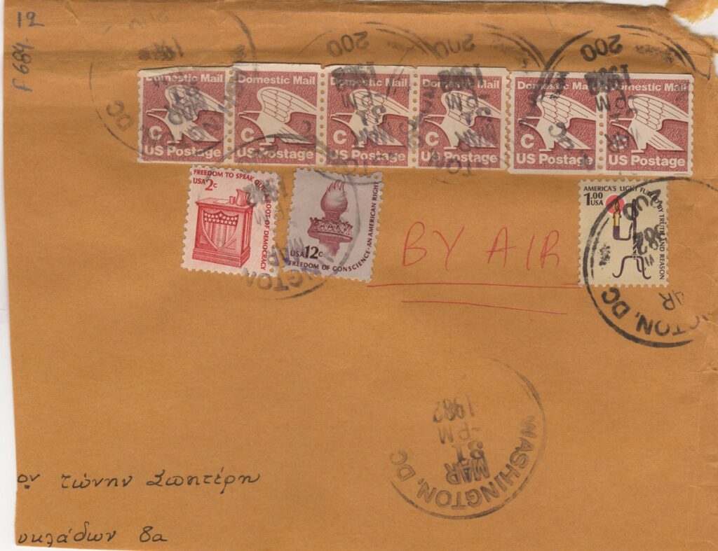 Απόκομμα, χαρτί, 13,5×17,5 εκ., στα ελληνικά, με χειρόγραφη διεύθυνση του Τώνη Σπητέρη στην Αθήνα.