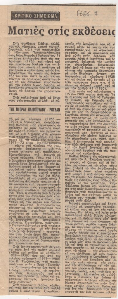 Εντάσσεται στη στήλη του εντύπου “Κριτικό Σημείωμα-Ματιές στις εκθέσεις”.