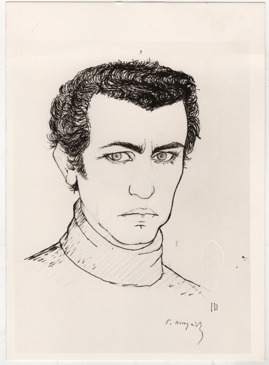 Φωτογραφία, α/μ, φωτογραφικό χαρτί, 18×13 εκ., έργου του Γιώργου Νικολαΐδη. Πρόκειται για αυτοπροσωπογραφία του καλλιτέχνη.