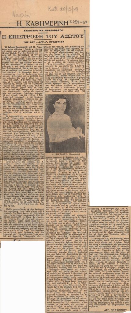 “Η σύγχρονη ελληνική χαρακτική. Μία μεγάλη επιτυχία Ελλήνων καλλιτεχνών σ’ Ευρώπην. Κολακευτικαί κρίσεις του Τσεχοσλοβακικού τύπου”