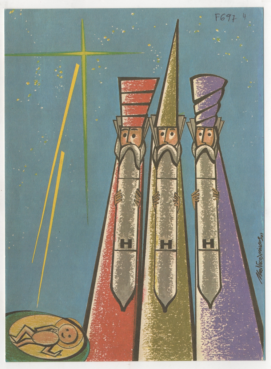 Ευχετήρια κάρτα, χαρτόνι διπλής όψεως, 23,5×17 εκ., στα ελληνικά, απεσταλμένη από τον Μιχάλη Νικολινάκο, προς το ζεύγος Σπητέρη.