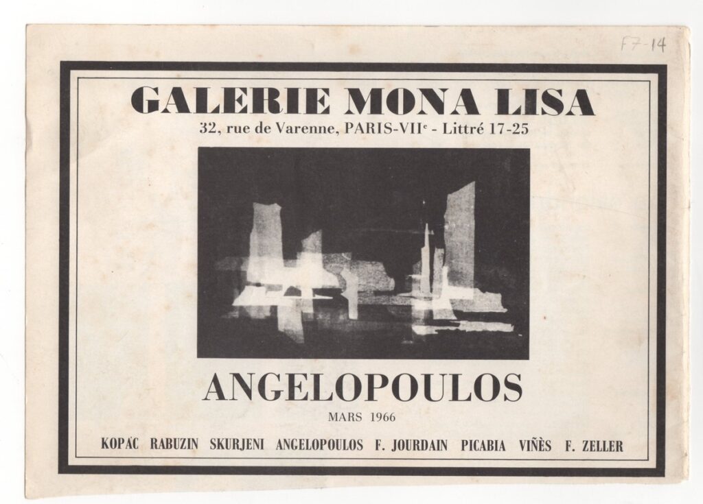 Απόκομμα, έντυπο, χαρτί, 17,2×24,1 εκ. (ακανόνιστο σχήμα), όπου δημοσιεύεται, στα γαλλικά, αναγγελία ατομικής έκθεσης του καλλιτέχνη. Αναφέρονται επίσης τα ονόματα των Kopac, Rabuzin, Skurjeni, F. Jourdain, Picabia, Viñes και F. Zeller. Εικονογραφείται με αναπαραγωγή έργου. Στην πίσω όψη, στήλη “Au calendrier” (αναγγελία των εκθέσεων της περιόδου στο Παρίσι), με αναπαραγωγές έργων των Ungold, C. Hermann και Lambert.