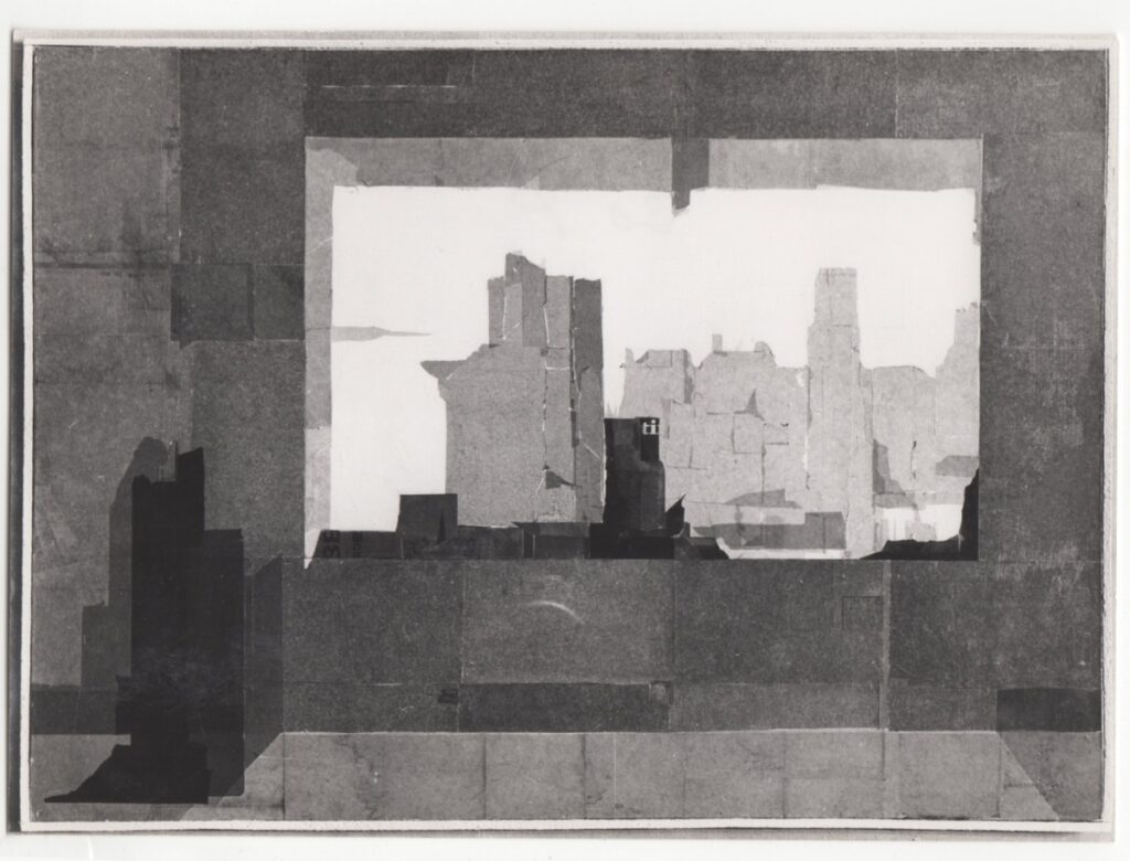 Φωτογραφία, α/μ, σε φωτογραφικό χαρτί, 12,5×17,5 εκ. Αναπαραγωγή έργου του Μένη Αγγελόπουλου. Στην πίσω όψη επιγραφή.