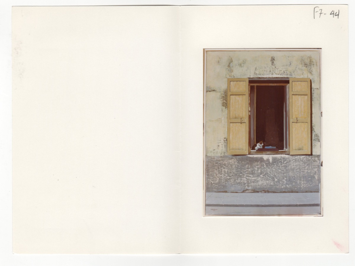 Φωτογραφία, έγχρωμη, σε φωτογραφικό χαρτί, 11,0×7,8 εκ., επικολλημένη σε χαρτόνι, 16,3×22,0 εκ. Αναπαραγωγή έργου του ζωγράφου Μένη Αγγελόπουλου.
