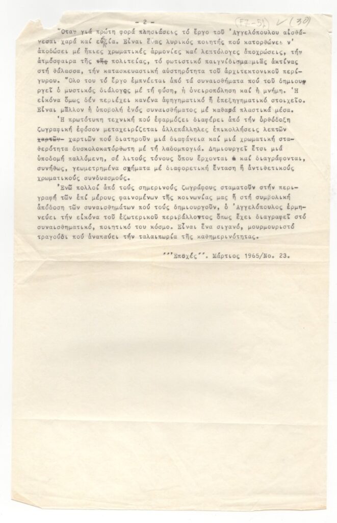 Κείμενο, στα ελληνικά, δακτυλόγραφο, σε χαρτί, 33,0×21,0 εκ., 2 φφ, μονής όψης.