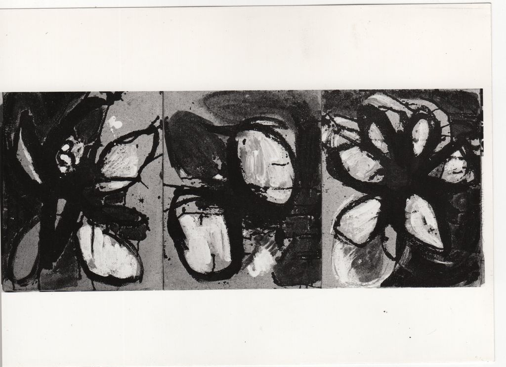 Φωτογραφία, α/μ, φωτογραφικό χαρτί Agfa, 13,0×17,2 εκ. Αναπαραγωγή του έργου της Μπίας Ντάβου «Τρίπτυχο» (1965). Στην πίσω όψη, επιγραφή με τα στοιχεία του έργου.