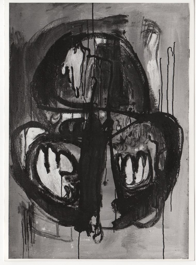Φωτογραφία, α/μ, φωτογραφικό χαρτί Agfa, 17,7×12,7 εκ. Αναπαραγωγή του έργου της Μπίας Ντάβου «Τριπλή μορφή» (1966). Στην πίσω όψη, επιγραφή με τα στοιχεία του έργου.