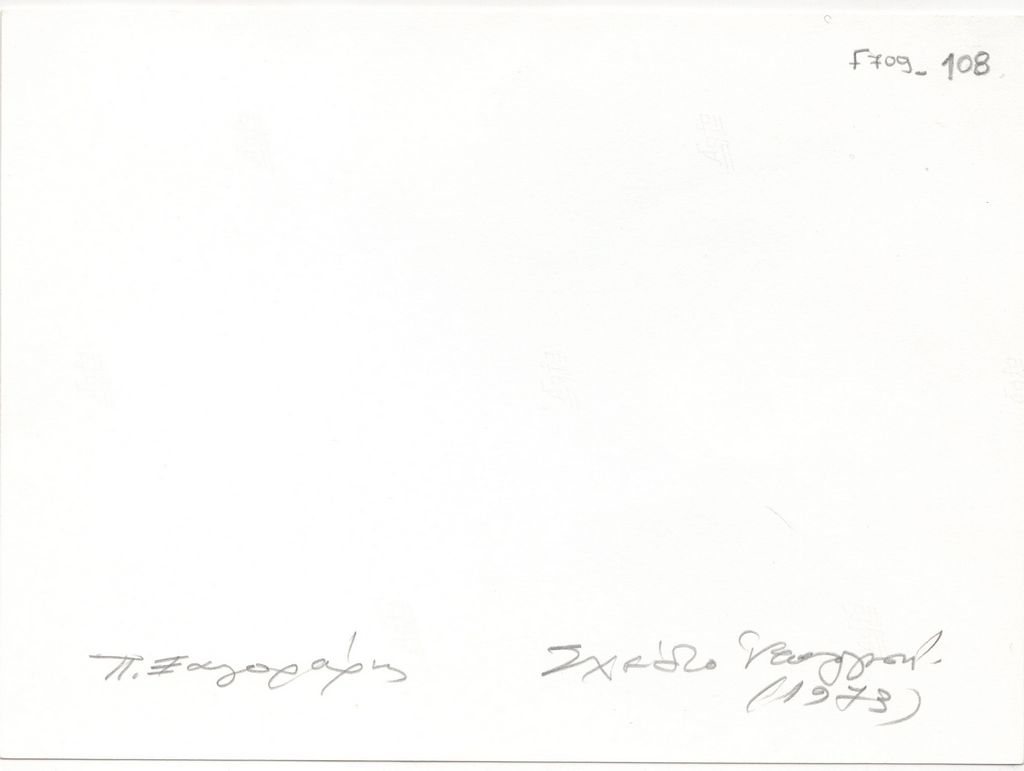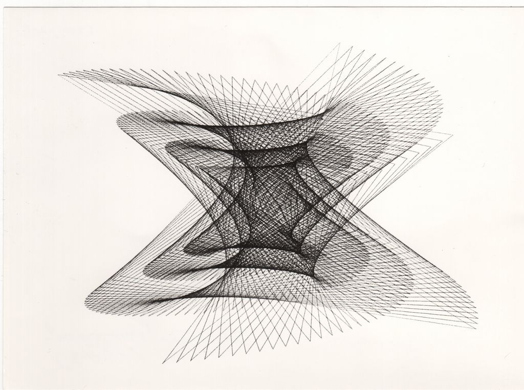 Φωτογραφία, α/μ, φωτογραφικό χαρτί, 13,0×17,8 εκ. Αναπαραγωγή έργου του Παντελή Ξαγοράρη, σχέδιο υπολογιστή, 1973. Στην πίσω όψη, επιγραφή με τα στοιχεία του έργου.