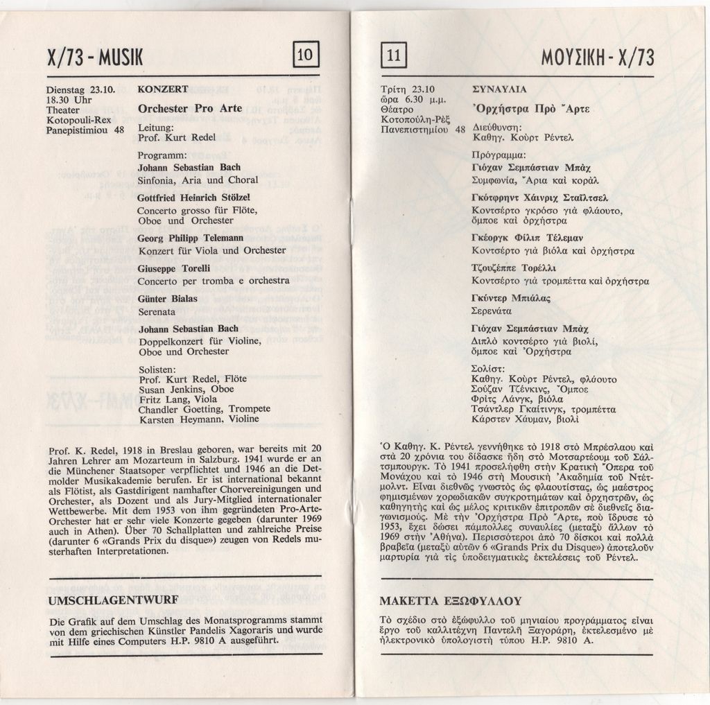 Πρόγραμμα εκδηλώσεων του Ινστιτούτου Goethe (Οκτώβριος 1973)