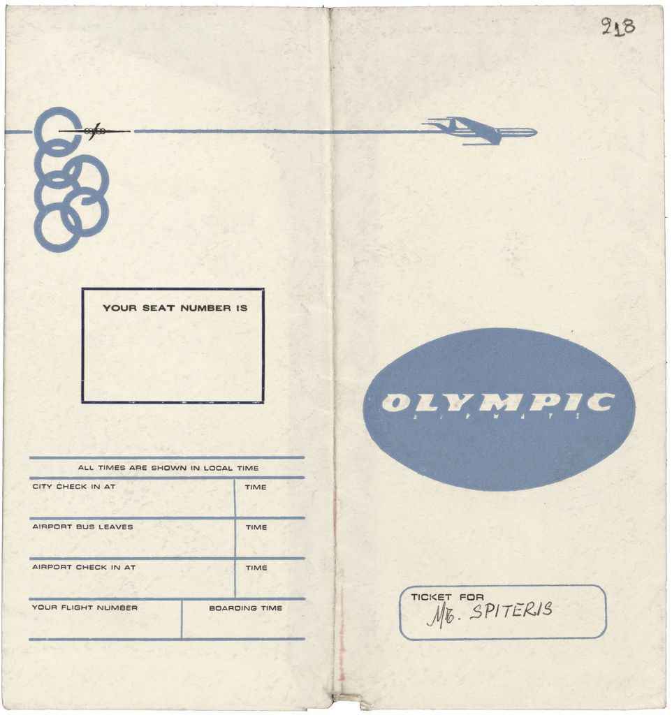 Φάκελος-Θήκη εισιτηριών των Ολυμπιακών Αερογραμμών του Τώνη Σπητέρη.
