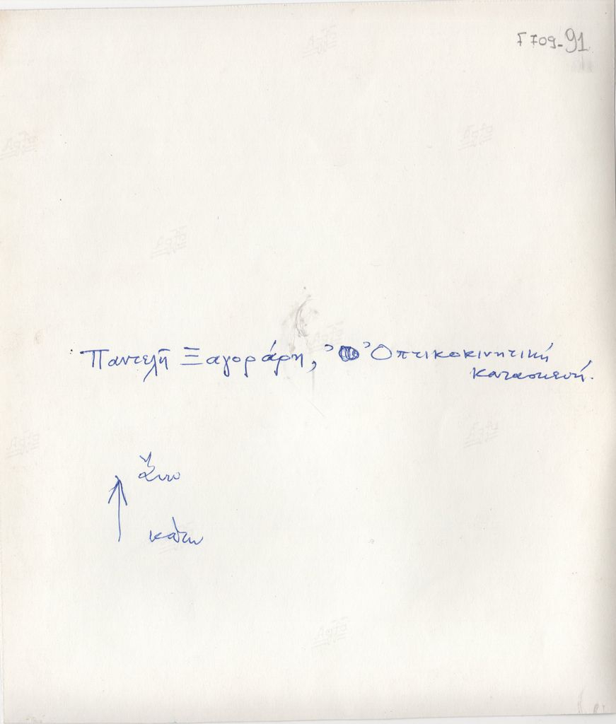 Αναπαραγωγή, α/μ, φωτογραφικό χαρτί, 19,2×16,7 εκ. Αναπαραγωγή έργου του Παντελή Ξαγοράρη με τίτλο “Οπτικοκινητική κατασκευή. Στην πίσω όψη, επιγραφή με τα στοιχεία του έργου.