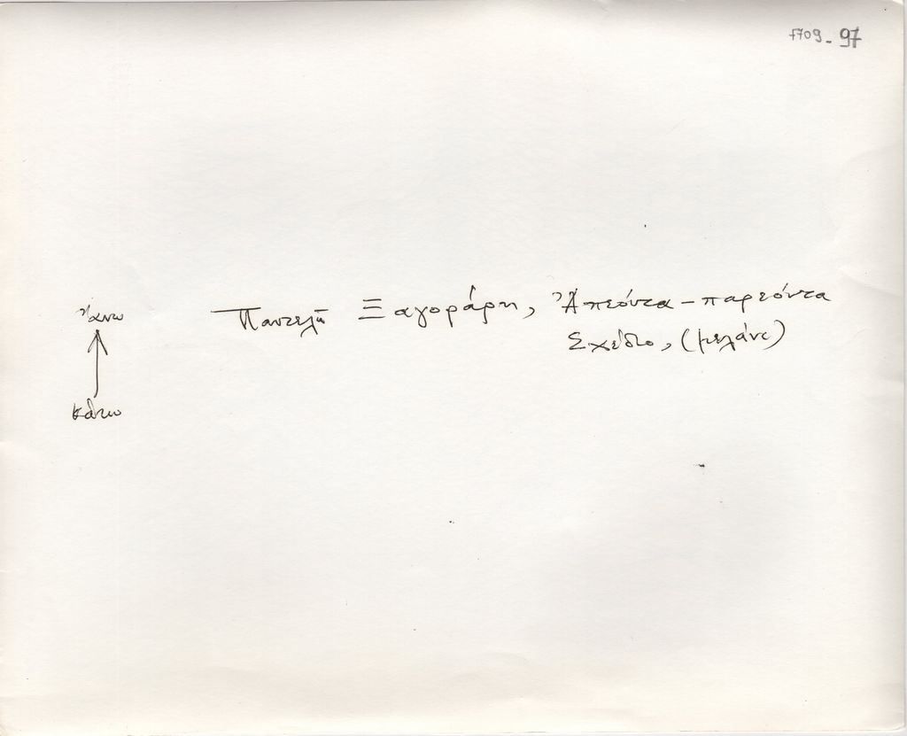 Αναπαραγωγή, α/μ, φωτογραφικό χαρτί, 20,5×25,5 εκ. Αναπαραγωγή έργου του Παντελή Ξαγοράρη. Στην πίσω όψη, επιγραφή με τα στοιχεία του έργου.