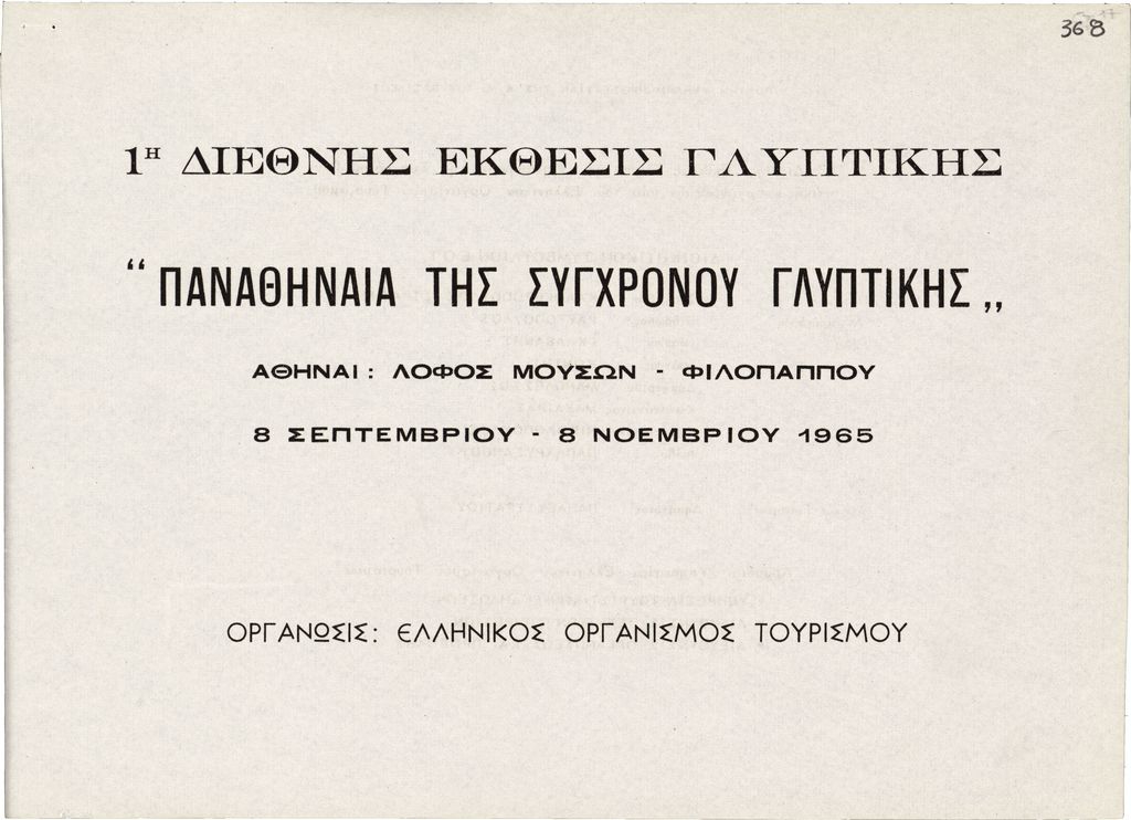 Τμήμα καταλόγου της “1ης Διεθνούς Έκθεσης Γλυπτικής” (‘Παναθήναια της Συγχρόνου Γλυπτικής’) της Αθήνας, χαρτί, 3 φφ, 17×23 εκ., στα ελληνικά.