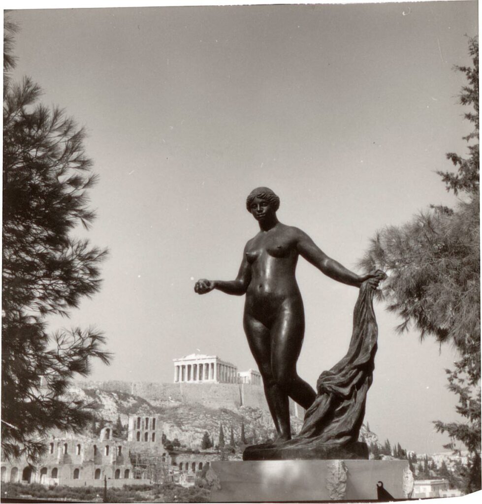 Ασπρόμαυρη εκτυπωμένη φωτογραφία έργου του Pierre-Auguste Renoir, το οποίο παρουσιάστηκε στην 1η Παγκόσμια Έκθεση “Παναθήναια της Συγχρόνου Γλυπτικής” στην Αθήνα τον Σεπτέμβριο.